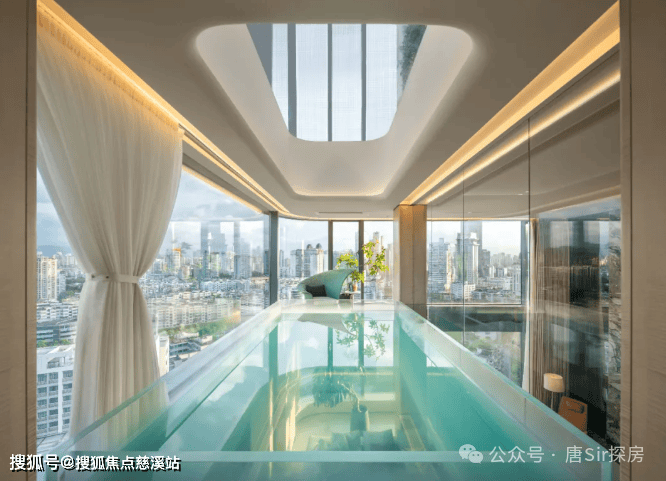 惊艳星空泳池:二楼打造了室内星空泳池,底部为透明设计,可清晰俯瞰一层客厅,仿佛悬浮半空,视觉效果极为震撼。