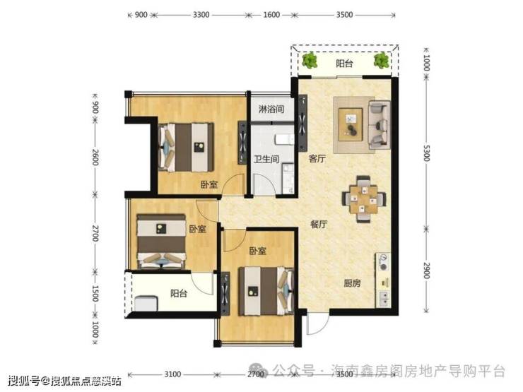 户型三房两厅两卫:116㎡送24㎡ 实得140㎡。