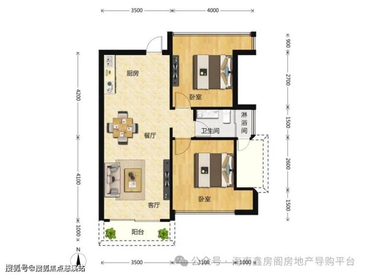 B户型两房一厅一卫: 50㎡送14㎡ 实得64㎡。