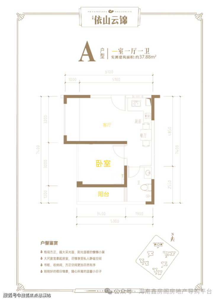 户型一房一厅一卫:38㎡送8㎡ 实得46㎡