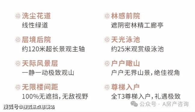 用温度与情感的生态语言营造自然景观,呈现功能、温情、风景交融的园林美学;融入安缦隐奢哲学、Alila奢级酒店的生活美学理念。在建筑与户型上,升级奢级体验,户户瞰山、无限楼间距、T3尊梯入户。打造120米景观主轴,步步皆景。生活的艺术并不是流于表面,而是藏于设计与空间背后的美学逻辑与生活态度。
