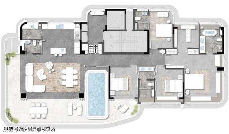 宸屿(约275㎡ 5+1室三厅四卫):旗舰级户型,极致空间尺度,5+1室满足多元功能需求,三厅设计适配高端社交与家庭欢聚,全明通透的格局搭配高奢精装,定义海岸高净值空间样本。