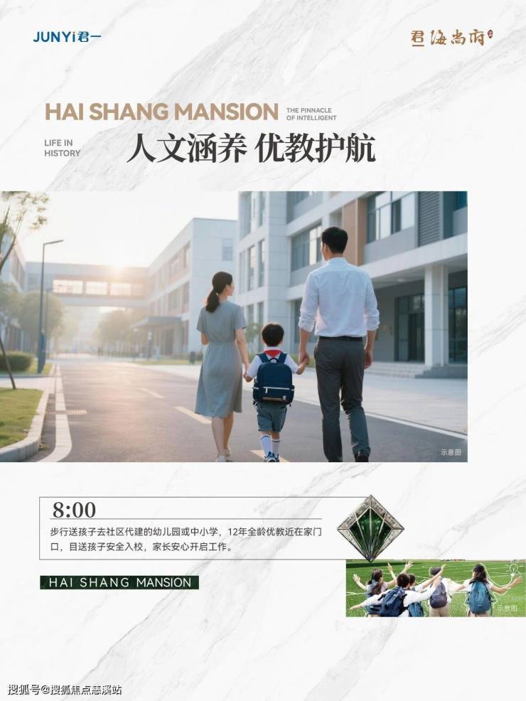 8:00——步行送孩子去社区代建的幼儿园或中小学,12年全龄优教近在家门口,目送孩子安全入校,家长安心开启工作。