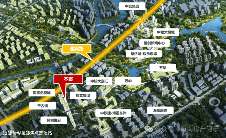 项目位于三亚市吉阳区迎宾路(海旅免税城北侧)。随着自由贸易港政策落地,在总部经济及中央商务区规划中,东岸单元作为建设大型综合消费商圈+总部经济核心区。汇集中粮、中交、保利、中航、中铁建、五矿等世界500强企业,已成为三亚城市功能上的中轴城心,凝聚着最重要的部门,昭示着三亚未来发展的方向,区域价值未来可期。