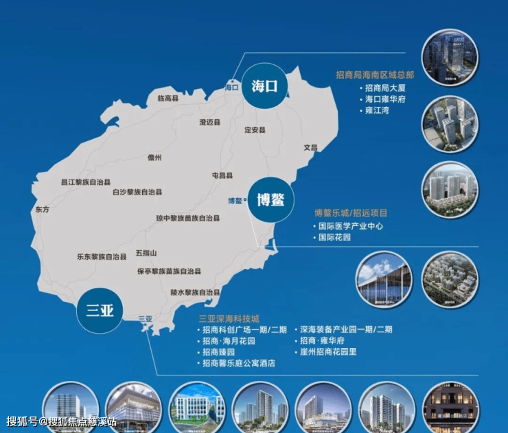 招商局集团于2018年与海南省建立战略合作关系,并联合旗下招商蛇口在内的5家单位合资设立招商局海南开发投资有限公司。围绕“国家所需、地方所想、招商所长、公司所能”形成一个总部、两个园区、两个平台、多个业务的发展格局。【三亚崖州湾科技城 海南科创高地】