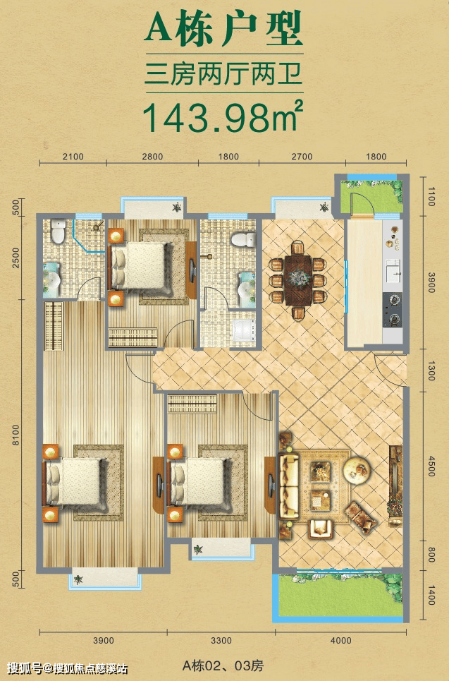 【户型面积】约85.55㎡、120.01㎡、123.56㎡、143.98㎡、156.24㎡