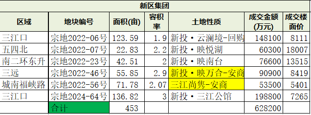对于新区集团,相比于其他国企,在土拍市场拿地并不算高调,只不过拿地的情况都比较糟糕。