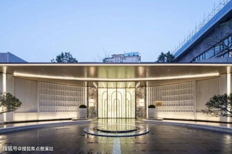 先看社区大堂:高门大院的直视感,社区主入口的设计灵感来自于上海华尔道夫酒店,石景墙上还雕刻有百合花纹,和项目案名相得益彰。