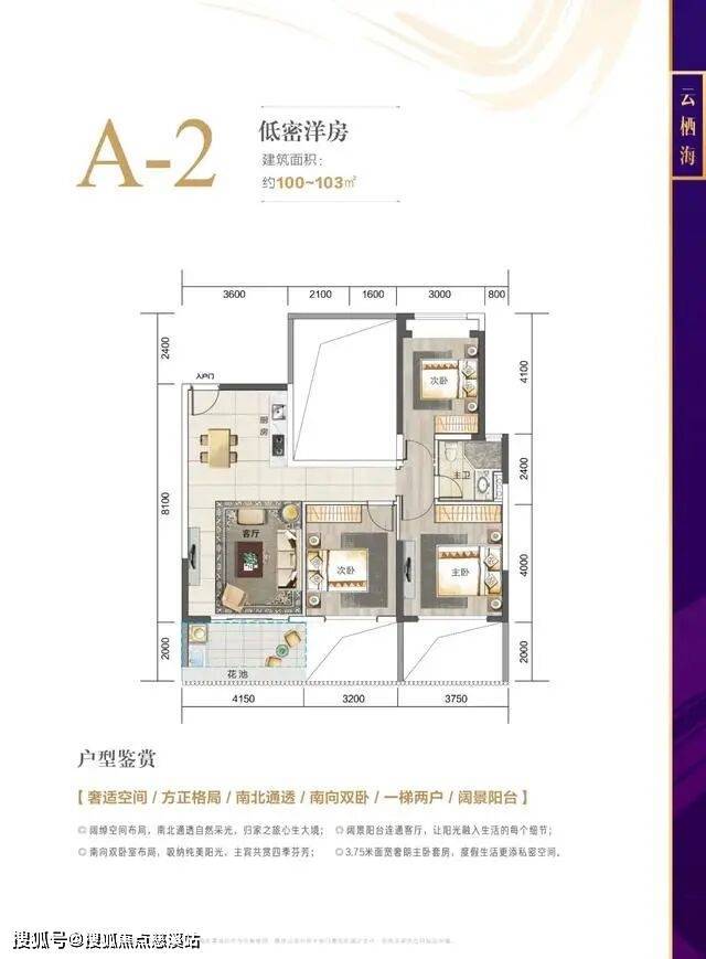 一梯两户,南北通透,阳光清风入户无拘束;双卧室朝南设计,4.2米面宽客厅连接阔景阳台,三面阳光环绕,生活乐趣自由延伸。