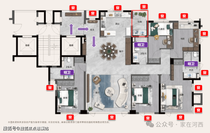 要知道,以前3卫通常要160㎡以上户型才具备,空间利用率优势一目了然。