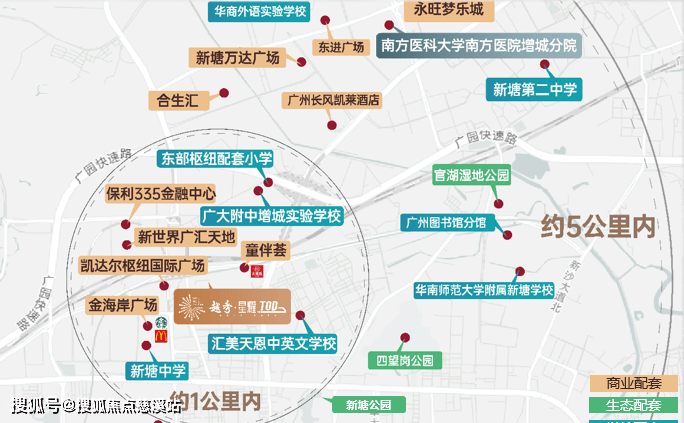5公里享三甲医院——南方医院医院增城分院、广东省水电医院等;