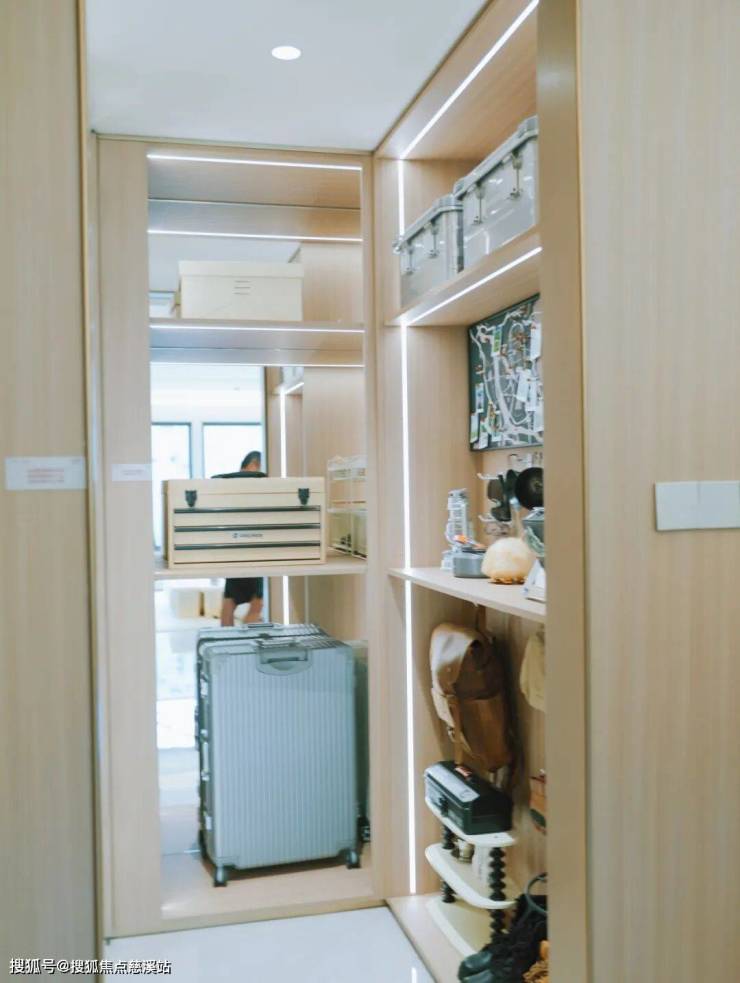亮点是搭配了一个约3㎡储藏间,全屋收纳达15㎡,可放下约160个登机箱的储物容量,实用性远超同类产品;不足之处在于入户对着餐厅,动线存在一定影响。