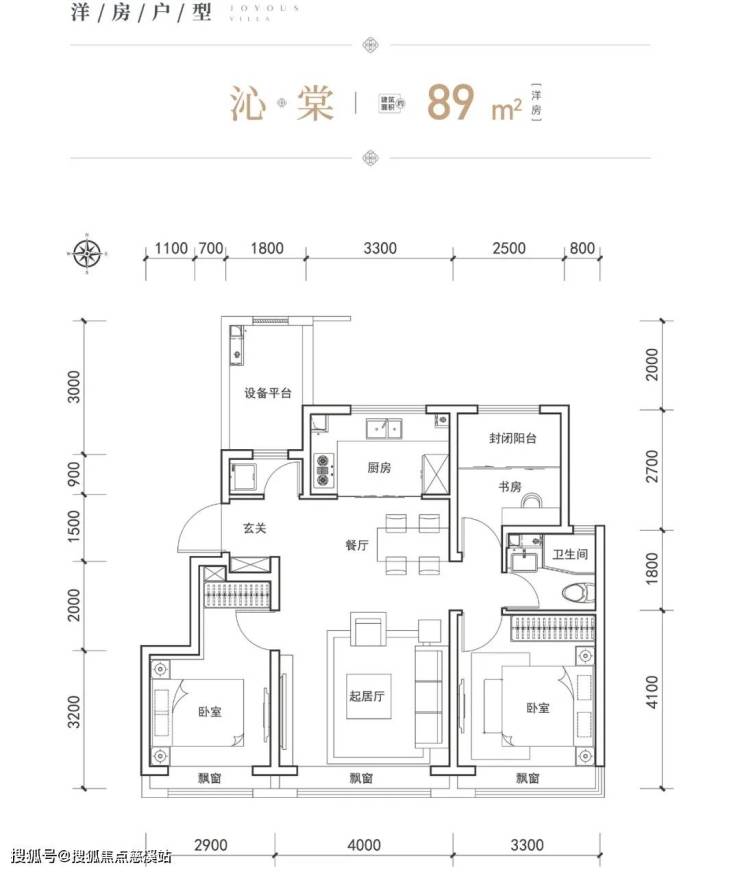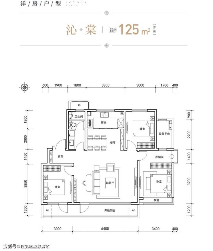 A3地块共有三款户型,分别为建筑面积约89㎡、115㎡、125㎡的三室。三款户型主卧都配备了270º转角飘窗。