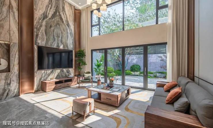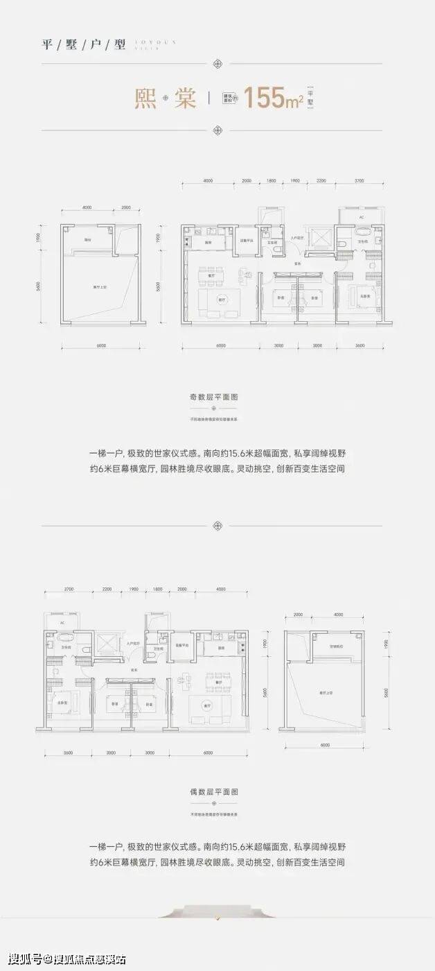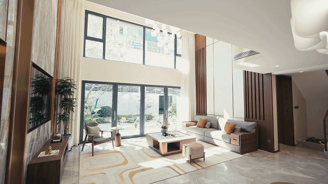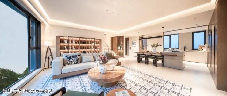 建筑面积约155㎡的高厅平墅,采用立体咬合式布局,通过上下层错位,在每户的客厅内都缔造了一个约30㎡的奢侈挑空。