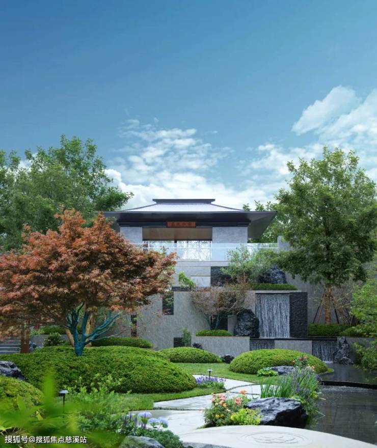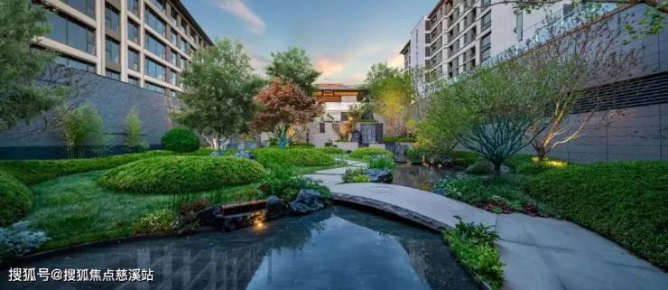 三进香池墨池以曲水流觞营造"身与云轻"的禅意空间,层次丰富的景观植被,赋予空间灵动的视觉韵律;