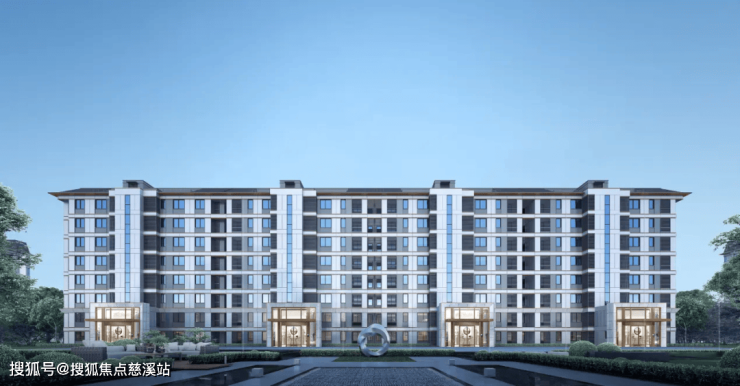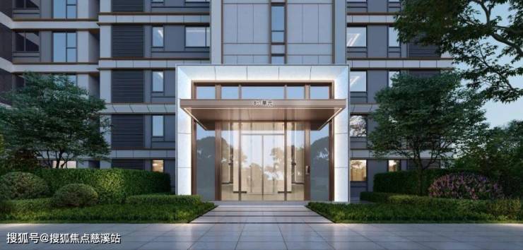 不止于此,中建对于北立面的规格也毫不放松,上有中式挑檐,下有迎宾感极强的入户大堂。
