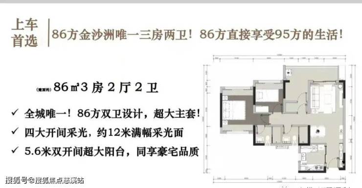 86平三房两厅两卫,86平产品作为刚需上车的首选,三房两卫足够实用。