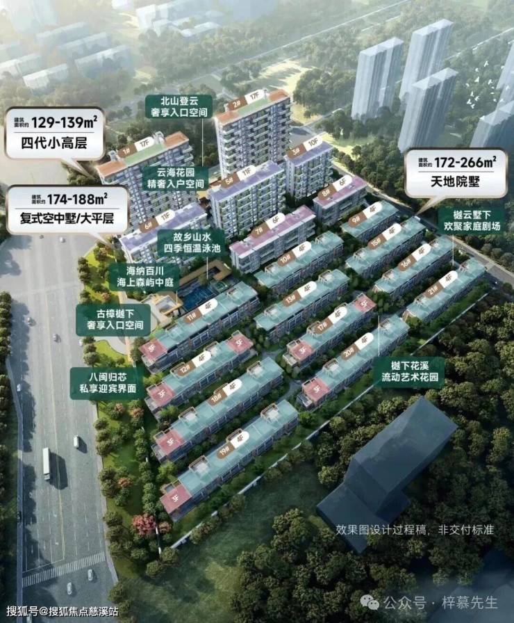 国贸樾云墅容积率仅1.5,建面约129-266平的4.0低密传世四代墅,分四代小高层(17F)、复式空中墅/大平层(10-11F)、天地院墅(3-6F)等产品形态,不再有高层,也没有小户型,通透采光,圈层纯粹。
