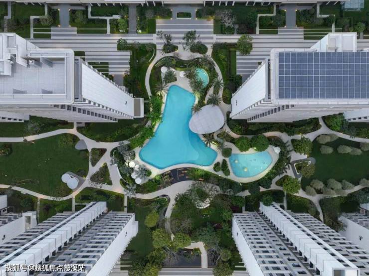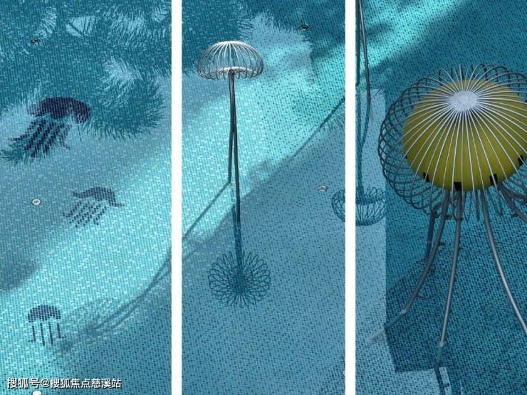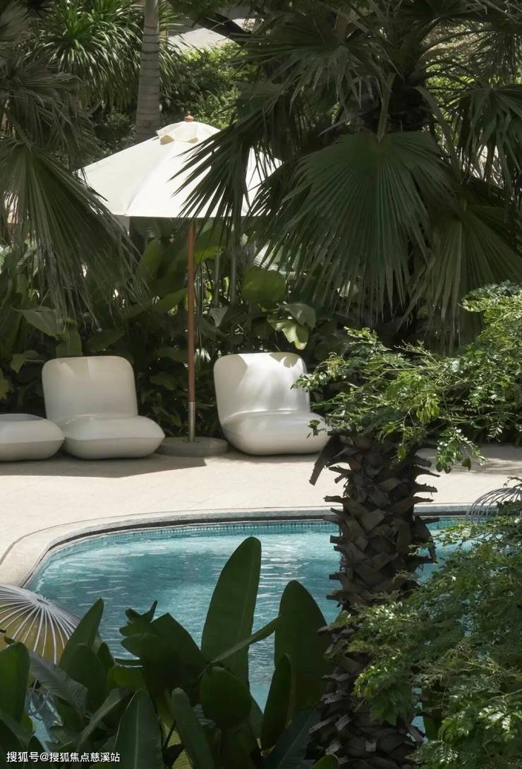 阳光穿透霸王棕层层椰叶,在森林泳池的水面上洒下斑驳光斑,树影倒映在水面,与池底纹样相映成趣,仿佛将整片蓝色天空揉碎在了水中。那流水音廊滴落的声调,仿佛是来自大海的呼唤,让人豁然开朗。而泳池边,那蜿蜒如自然海岸的曲线,好似正在引领我走向“大海深处”。