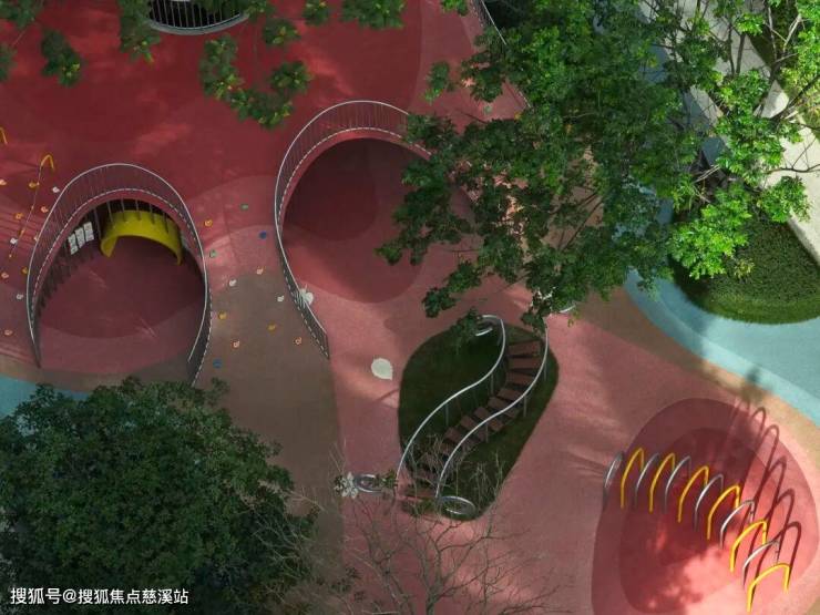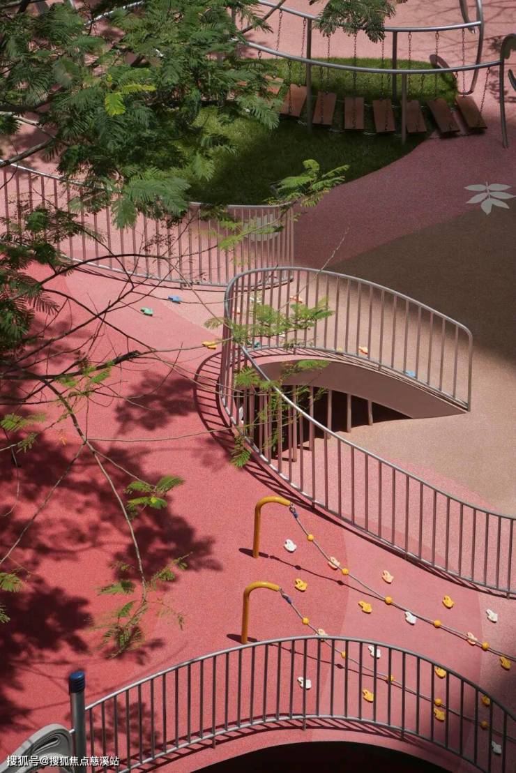 珊瑚赫,源自海底深处的最珍贵的红珊瑚,带着自然的热烈与纯粹。我们将这抹温暖的色彩,融入儿童活动区的地形起伏中。热烈活力的红色山丘像是一只可爱的章鱼,柔软的触脚幻化成一座座小桥,轻巧的衔接着地面与山顶。