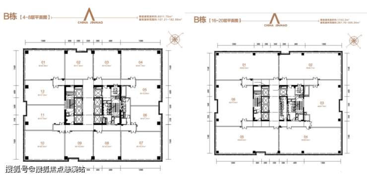 层高设计:9.8米挑高大堂,首层层高5.6m,标准层高4.2m,最高层高5.1m,楼栋总高度108.65米