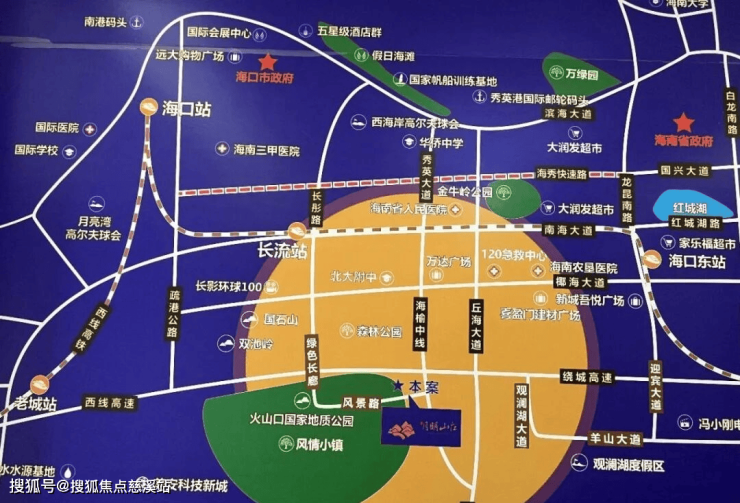 “月明山庄”位于海口的中南部,属海口市秀英区管辖,占地82亩,绿化率高达60%,容积率仅0.35%,由66栋双拼别墅组成,共132套,停车位270多个,每户基本配备2个停车位。项目到国家4A级景区石山火山石地质公园仅3公里路,开车4分钟就可到达,距离石山镇最大的农贸菜市场6公里,石山镇有银行、超市,可基本满足生活所需。项目西面和南面全是生态保护区,这里土壤和水质含有丰富的微量元素,周边森林覆盖面积大,空气含氧量高,特别适合居住和养生。项目东面紧挨观澜湖片区,有观澜湖度假区,冯小刚电影公社,还有12个高尔球场。项目北面,走海榆中线6.7公里路可到万达广场和北大附中附小,开车仅需10分钟车程。3~4分钟可到绕城高速,绕城高速有多个出入口进出海口,开车20分钟可到海口市区,交通非常方便。