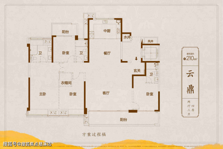 210平方米:四房两厅三卫,铅印间朝南,主卧搭配衣帽间,整体布局没太大变化,从210平方米这个面积段上看,尽管布局没太大硬伤,但也没太大亮点,从实用性上看,179平的布局感觉更加实用。