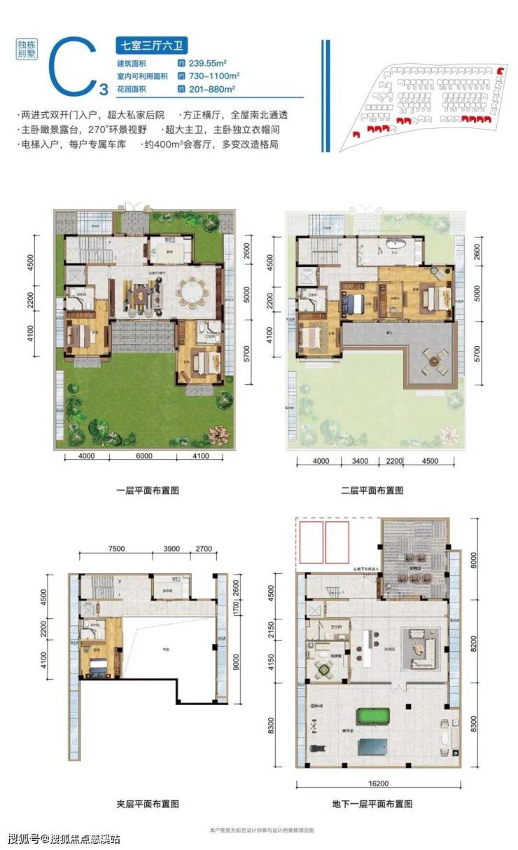 • 户型选择:115—168㎡平墅(3.9米层高+南北双露台)、126—396㎡独栋别墅(拓展后使用面积271—1346㎡)