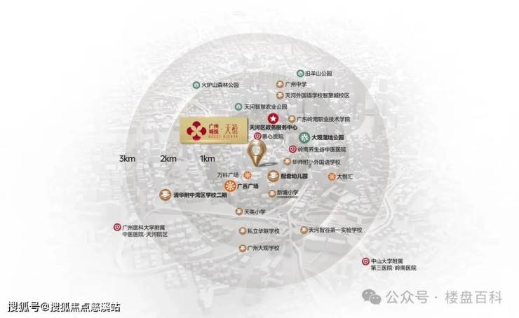 医疗——蕙心医院(约380米)、岭南养生谷中医医院(约1300米)等近在咫尺;广州医科大学附属中医医院·天河院区(约8km)、中山大学附属第三医院·岭南医院(约8km)等三甲医院环绕周边,为健康保驾护航;