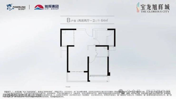 B户型-约64㎡-两房两厅一卫【已售罄!两房已售罄❗️】