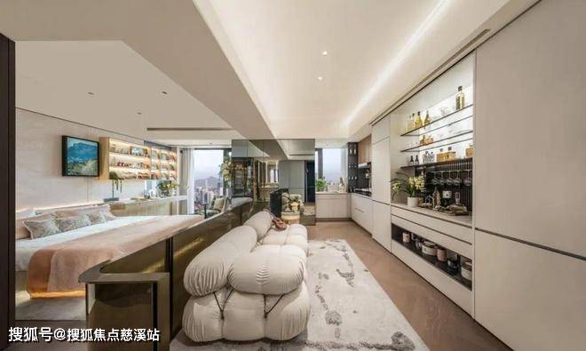 全卧朝南,还做到了南向约9米三开间,空间开阔,而且配色基调沉稳高级,整个品质感做的十分到位。