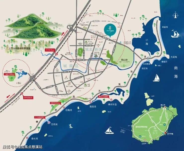 景区配套:8大湾区环绕、东山岭风景区(海南第一山)、小海、分界洲岛