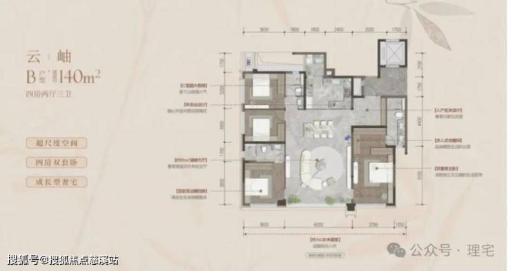 建面140㎡ 户型|双主卧套房全龄生活场域
