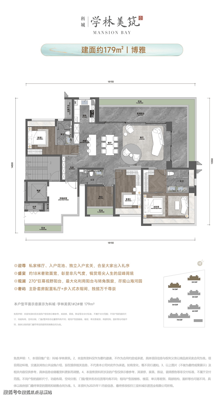 建筑面积约124/143/179㎡三大奢适平层户型,以满配精装交付规格,营造崖州湾塔尖生活主场;空间设计上,采用客厅、餐厅、厨房、阳台一体化贯通的LDKBG先进设计理念,在提升空间利用率和室内通透度的同时,更注重花园式阳台的打造与利用,更契合热带海岛生活特点,让阖家欢享的美时美刻,绽放最灿烂的欢乐与阳光。