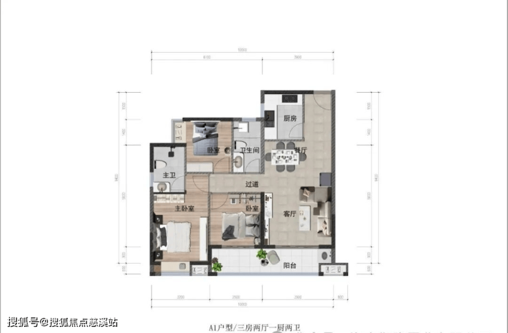 (建面约) 100m²三房两厅两卫。