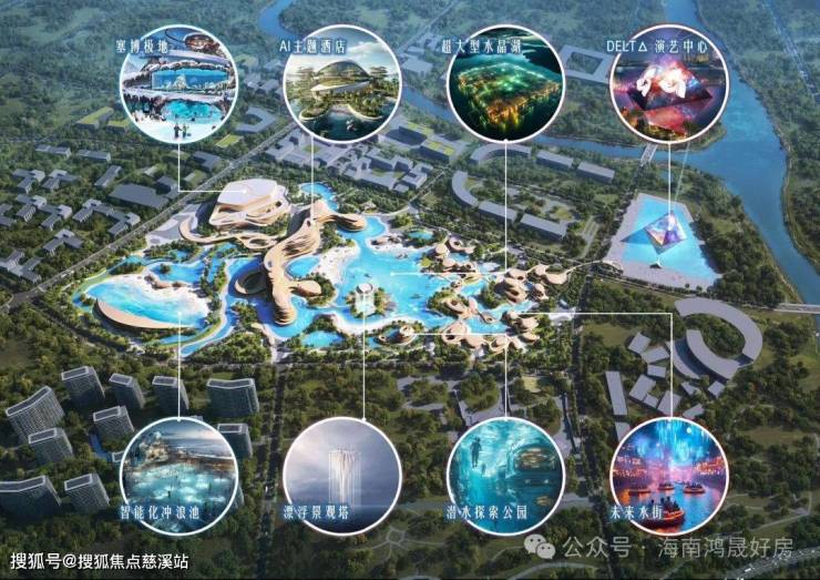 3、项目整体规划1430亩,涵盖主题乐园、特色主题酒店、大型商业综合体、海棠湾演艺中心、住宅等多功能配套,打造集居住、度假、休闲于一体高端品质生活社区