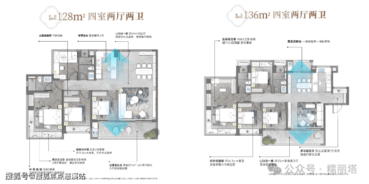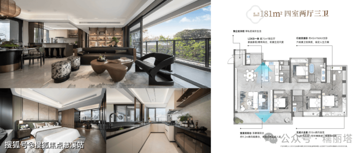 ▻181㎡-四房两厅双套卫约18米南向面宽丨9.2米南向景观阳台丨约75㎡社交巨厅丨星级双套卫
