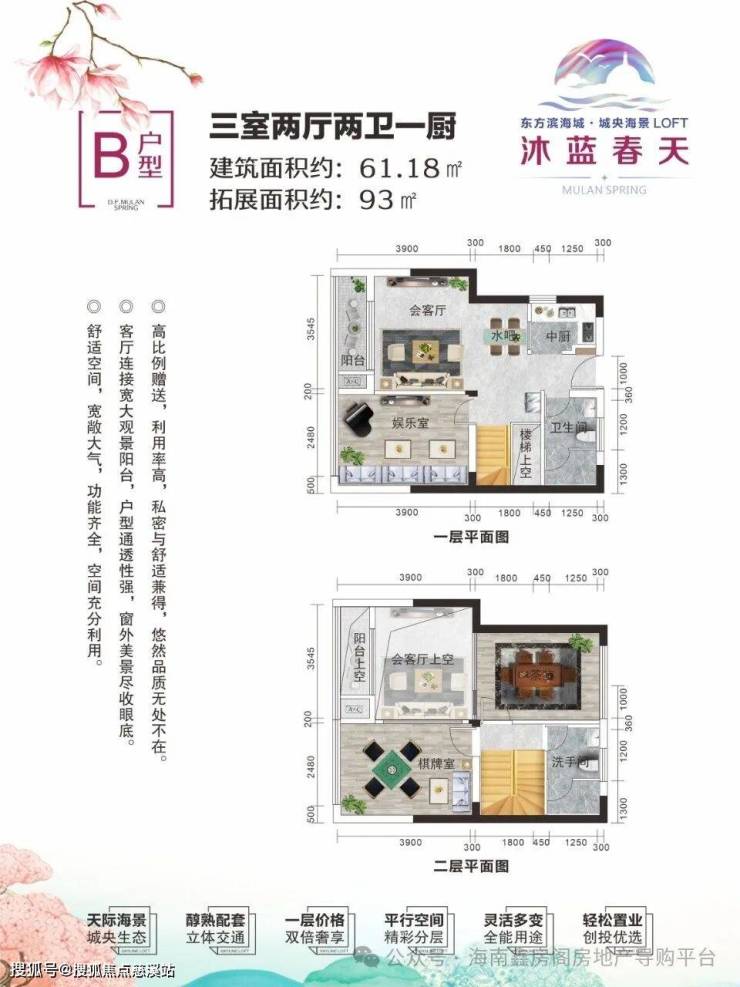 赠送面积:买一层得两层