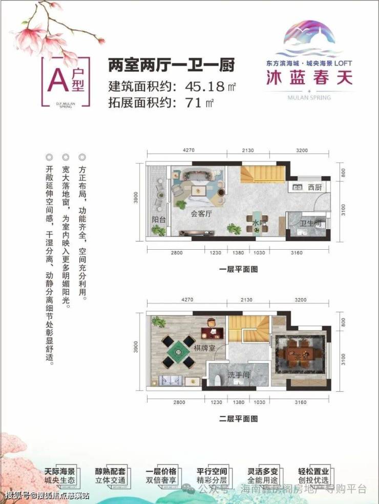 ⚛ 产品户型:45㎡loft两房两厅 61㎡loft三房两厅