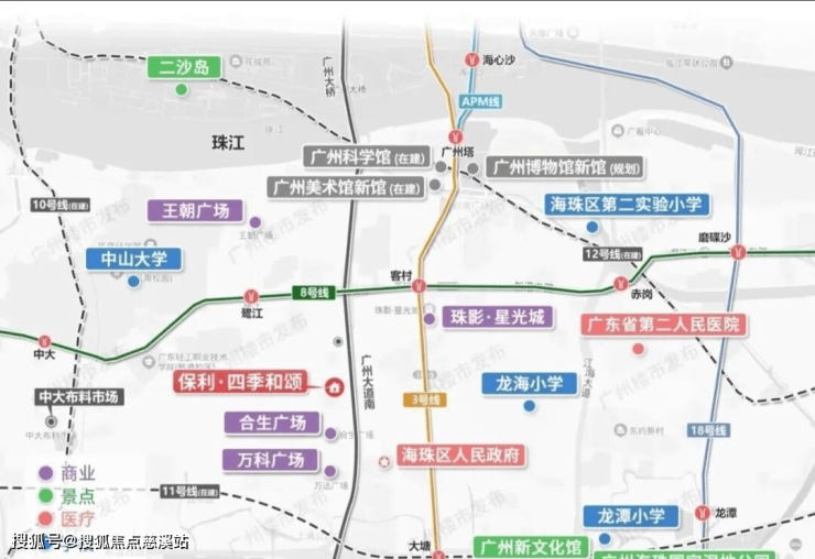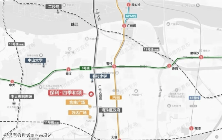项目距离最近的地铁站是8号线客村站和鹭江站步行距离都是1.5公里左右,周边还有3/10/11号线,4条地铁交汇,1站可达广州塔,2站到珠江新城,3站至琶洲西区。