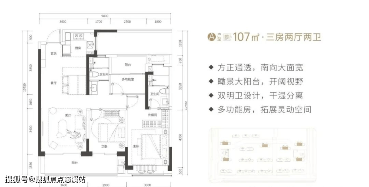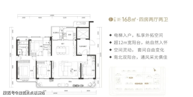纯板楼设计:首期推出建面约107-168㎡的三至四房户型,均为纯板楼,南北通透,采光通风良好。