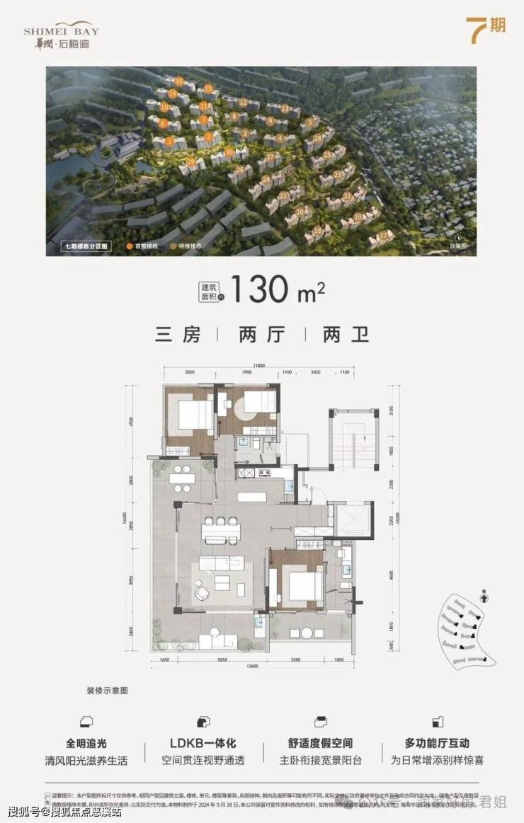 石梅湾住宅分十二期开发,一至六期售罄,目前在售七期洋房、十期半山叠墅。七期洋房,是整个湾区离水系最近、生活最便利的低密洋房,地块北高南低,做阶梯式景观。