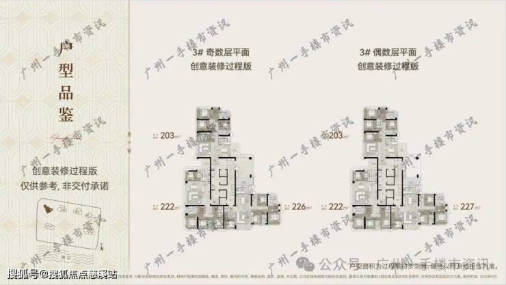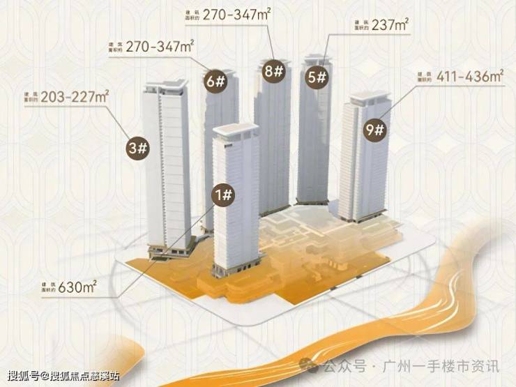 下面我们来看保利南方面粉厂项目最新的官方平面户型分布图,项目总共6栋35-50层高的超高层住宅,1号楼是整个项目最大630㎡户型,3号楼户型涵盖203-222-227㎡,6号楼和8号楼的户型均为270-347㎡左右,5号楼户型为237㎡,9号楼则是大面积411-436㎡的户型。