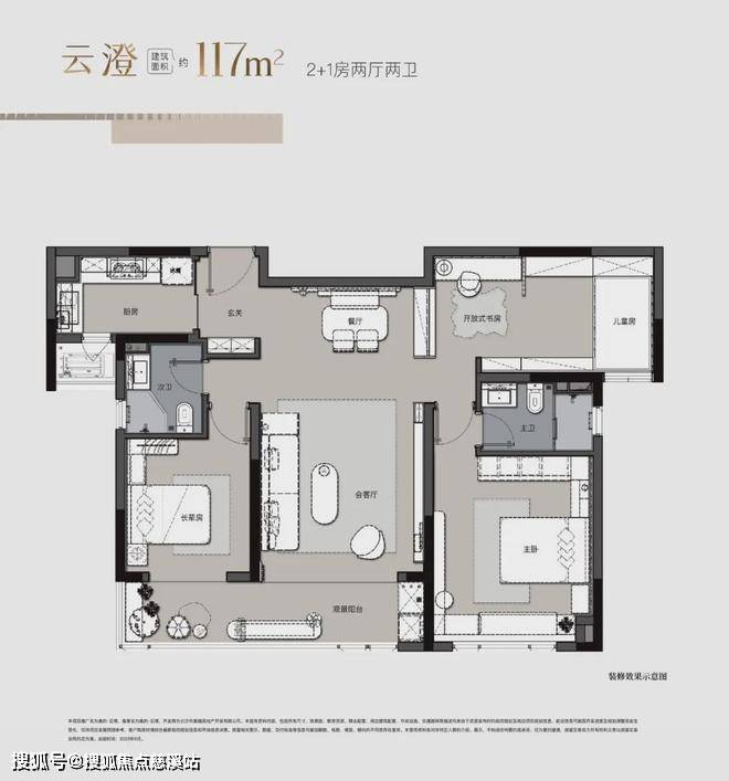 143平米与117平米户型是两梯三户的设计,没有做连廊设计,三合一电梯核心筒,这种三户一层,可以让每户的公摊小一些。