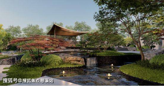 园林景观的设计取意“中国十大传世名画”之一《千里江山图》,注重表达中国人对雅致隐逸内敛精神的追求,借用中式园林“不出城廓而获山水之怡,身居闹市而得林泉之趣“造园理念,打造一街、三巷、六园,形成“亭、台、楼、阁、泉、石、花、木”八大景观,再现返璞归真、大隐于市的意境。