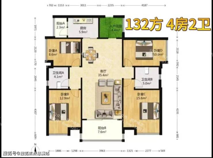 01户型 132方 东南西向 四房两卫