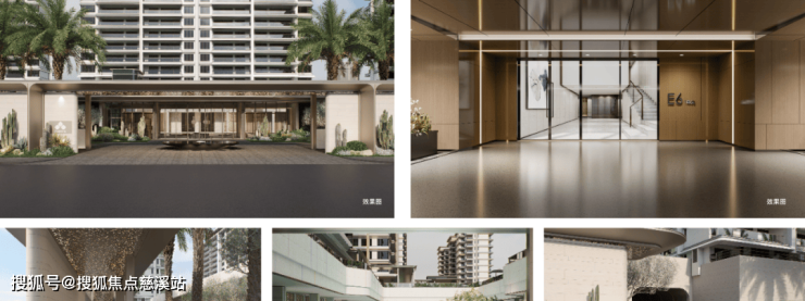 •第一进:酒店式归家:近 70 米长弧形落客门廊,围合仪式感入口前院