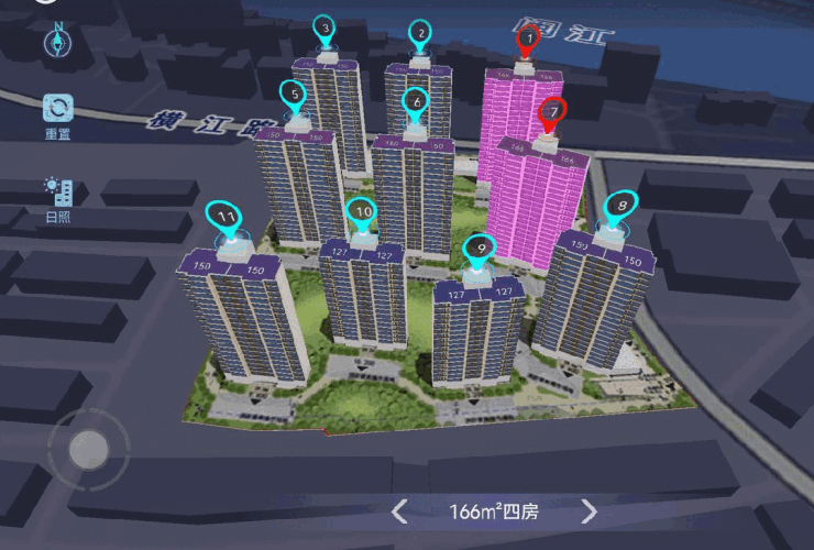 仓山区烟台山板块,上渡片区,容积率2.4,纯商房,总计403套,规划共10栋楼,其中2栋17层小高层、8栋21-23层高层。项目共4种户型,均为1梯两户,最小127㎡,最大166㎡,主力面积段为150㎡四房,其中150㎡有两面宽阳台和三面宽阳台的两种户型。