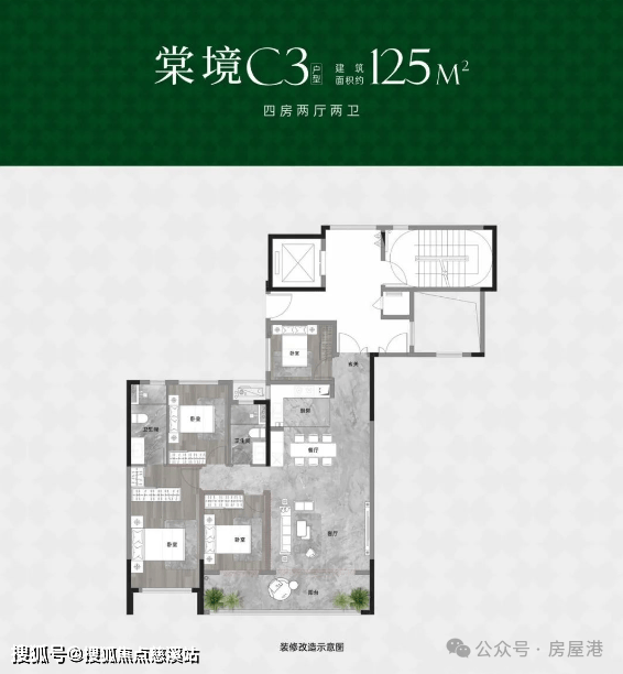 具体户型图也随之流出,包括建面125㎡四房、143㎡和200㎡五房三种户型,全部为新规产品。