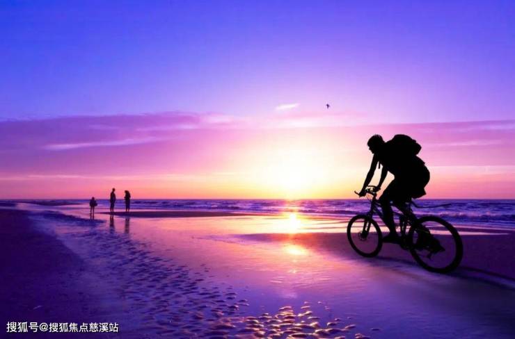 与夕阳一同骑行海岸上